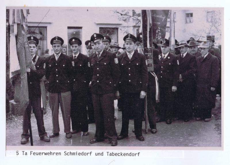 4 Feuerwehren Schmiedorf und Tabeckendorf bei einem Kirchenzug um 1960 (Fahnenträger Brumm Gust, 3. v. li. Mitterer Franz, 6. v. li. Haufellner, 9. v. li. Nusser, 11. v. li. Helldobler Josef, 12. v. li. Altmann Luderbach, 12. v. li. Wieser Will 4 Feuerwehren Schmiedorf und Tabeckendorf bei einem Kirchenzug um 1960 (Fahnenträger Brumm Gust, 3. v. li. Mitterer Franz, 6. v. li. Haufellner, 9. v. li. Nusser, 11. v. li. Helldobler Josef, 12. v. li. Altmann Luderbach, 12. v. li. Wieser Will