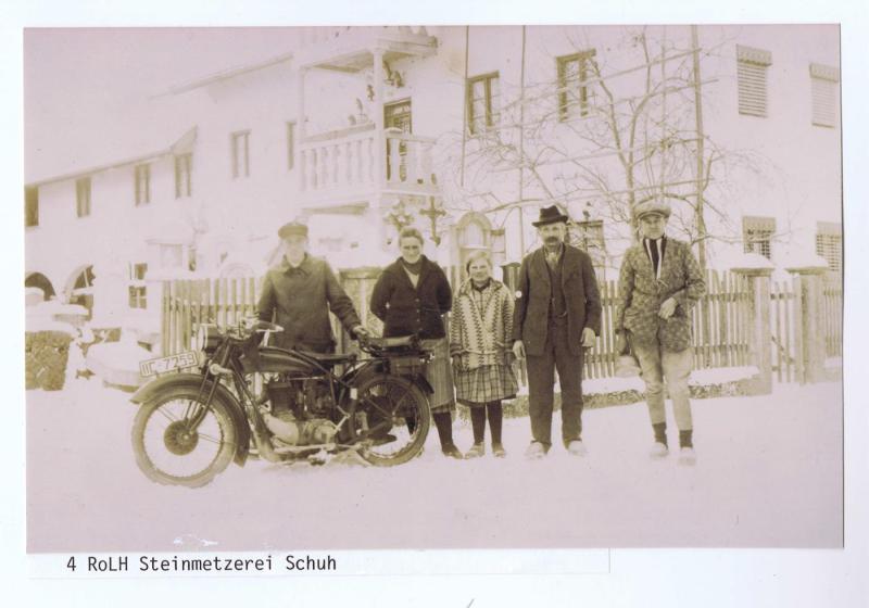 Steinmetzgeschäft Schuh in Roßbach, davor die Familie