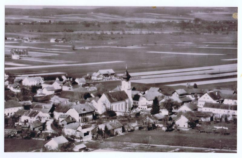 1954 Ansicht von Roßbach nach der Hochwasserkatastrophe 1954. Das Wasser steht noch in den Feldern