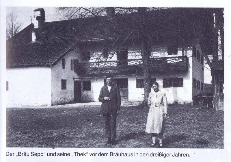 Der "Bräu Sepp" und seine "Thek" vor dem Bräuhaus in den dreißiger Jahren.